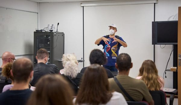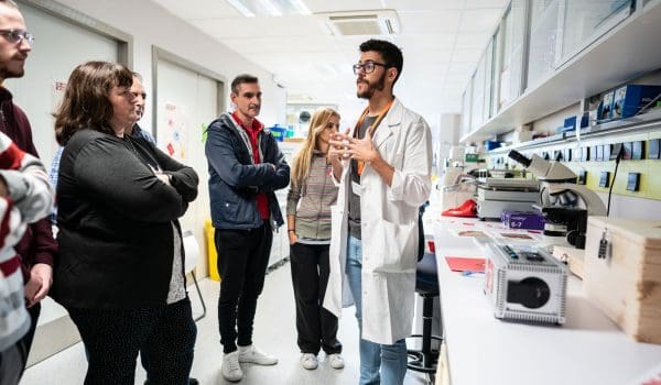El matí del dissabte 14 de juny de 2025, sota el lema “Del lab al barri“, Sinergia va acostar la ciència i la salut de l’IDIBELL al barri de Bellvitge, un dels pols més actius en investigació biomèdica i assistència sanitària del país. Ho va fer dinamitzant simultàniament dos espais: els laboratoris de l’Hospital Duran i Reynals i el Parc de Bellvitge, un dels pulmons verds de la ciutat. En ells, es van organitzar les activitats ja habituals de les portes obertes (visites guiades, xerrades divulgatives i l’IDIescape al Duran i Reynals; i tallers de ciència per a petits i grans i una masterclass d’activitat física al parc), amb una bona assistència. Com a novetat, es va oferir un espectacle de freestyle en català conduït per Catalunya Freestyle que va fusionar ciència, llengua i música en una batalla de cervells apassionant.